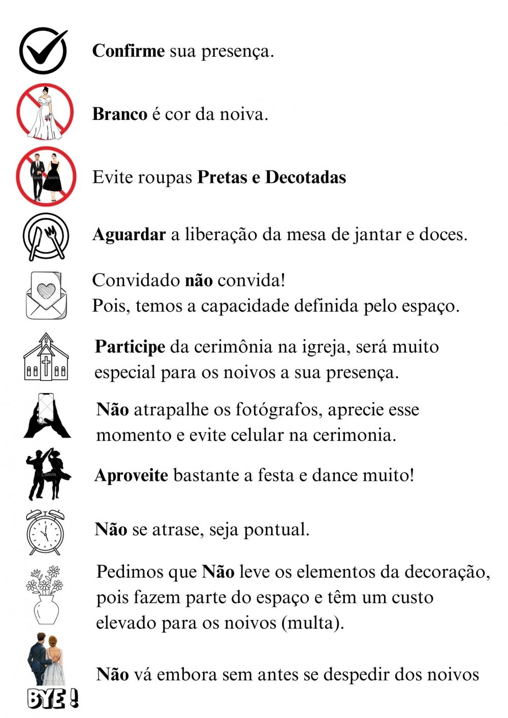 Aqui, vocês encontrarão todas as informações importantes, como data, hora, locais de cerimonia e recepção, recados e muito mais, para que a experiência seja ainda mais tranquila e inesquecível.
